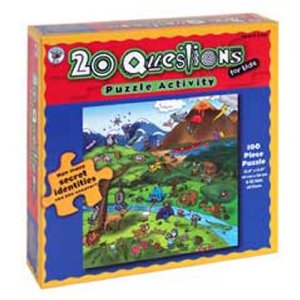 My neighbor, the Pre K-4 teacher, who is always stocking my shelves with cool products that she likes, gave me this puzzle. We’ve done it a few times and Jake is really digging it. The object of the activity is to find the item in the puzzle that is being described by a set of thought-provoking clues. The box says it’s for ages six and up, but mainly because 1.) It’s 100 pieces and 2.) The clues are not easy. This is such an easy activity to modify, however, and was a great speech exercise. As we were searching for the pieces, some of my clues went like this: