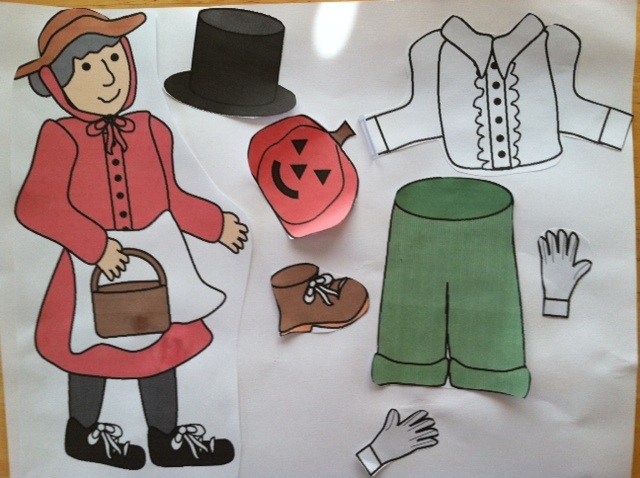 Jake enjoyed this book and he especially got a kick out of the following props I used to make the story come to life: shoes, pants, shirt, gloves, hat, and a trick-or-treat jack-o-lantern. I also loved the story telling ideas and activities that Playing with Words 365 posted here.