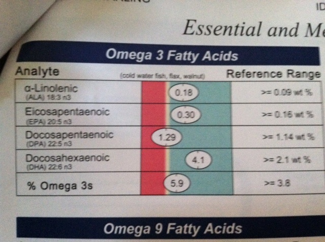 Before writing this post, I sat down and went through our 26 page NutrEval report that we received in August of 2012. I hadn’t looked at it since that first week when we received the news that Jake had a long list of nutritional deficiencies. Even though most of the results were bad, I remember feeling victorious that 4 out of the 5 omega-3 levels were within normal range. This is a biggie for us because Jake cannot take fish oil. I was also pleased that out of 40 line items on amino acid levels, only 10 were abnormal.