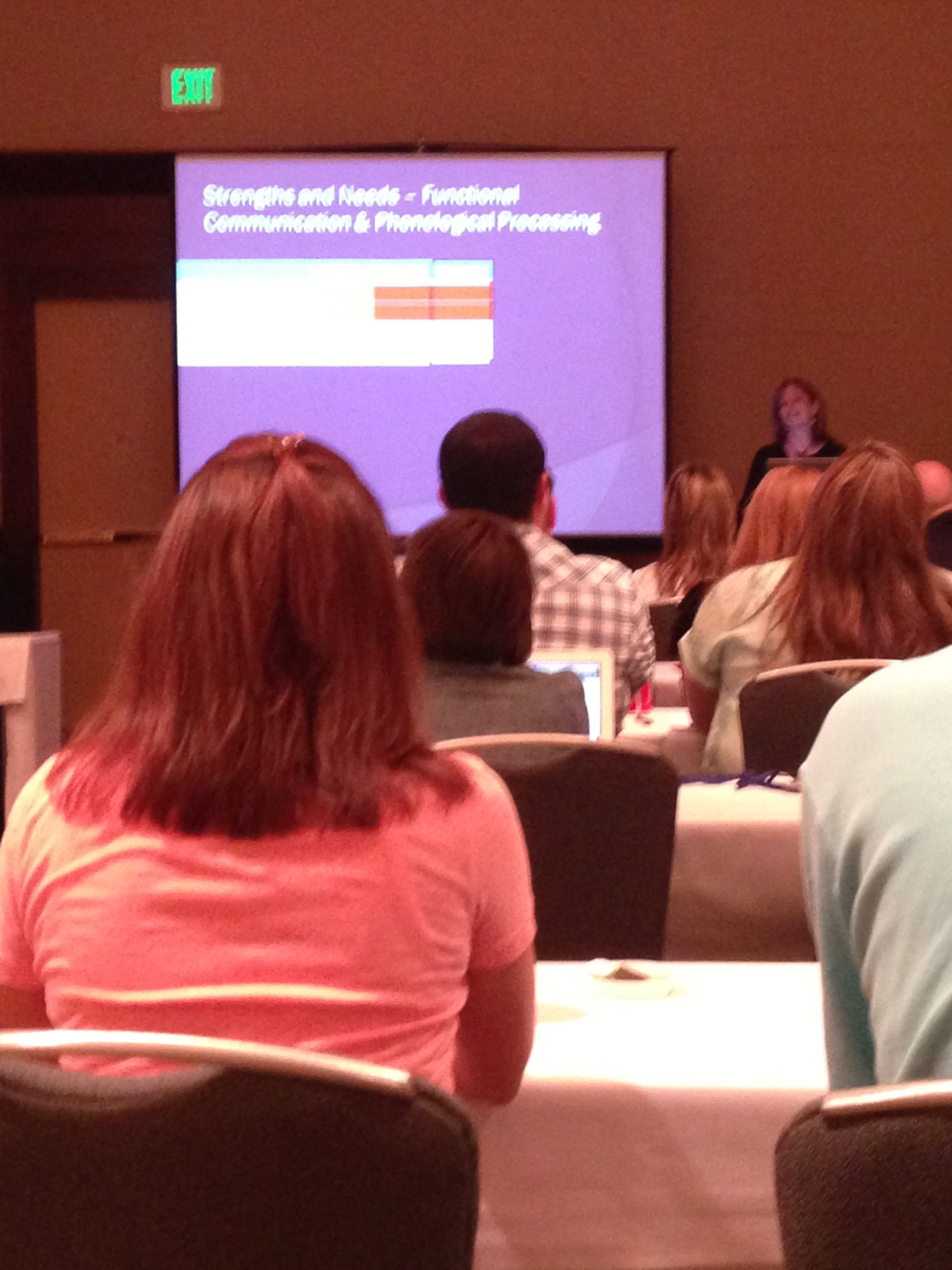I attended the pre-conference session, which was designed specifically for parents to learn the basics about apraxia from the country’s leading experts. Here I was, sitting in a room with a hundred other parents, all of us sharing the same experiences and having the same desires for our children to speak. As I looked around the room, it was very comforting and emotional, as I was not alone in my journey. For the first time, I felt a strong sense of belonging to these strangers; the bonds of friendship were instantaneous.