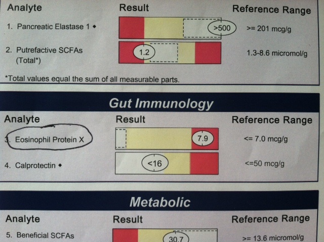 Jake has elevated Eosinophil Protein X (EPX) levels, which means his gut is inflamed. In this particular case, a high protein diet like SCD, will only worsen the inflammation.