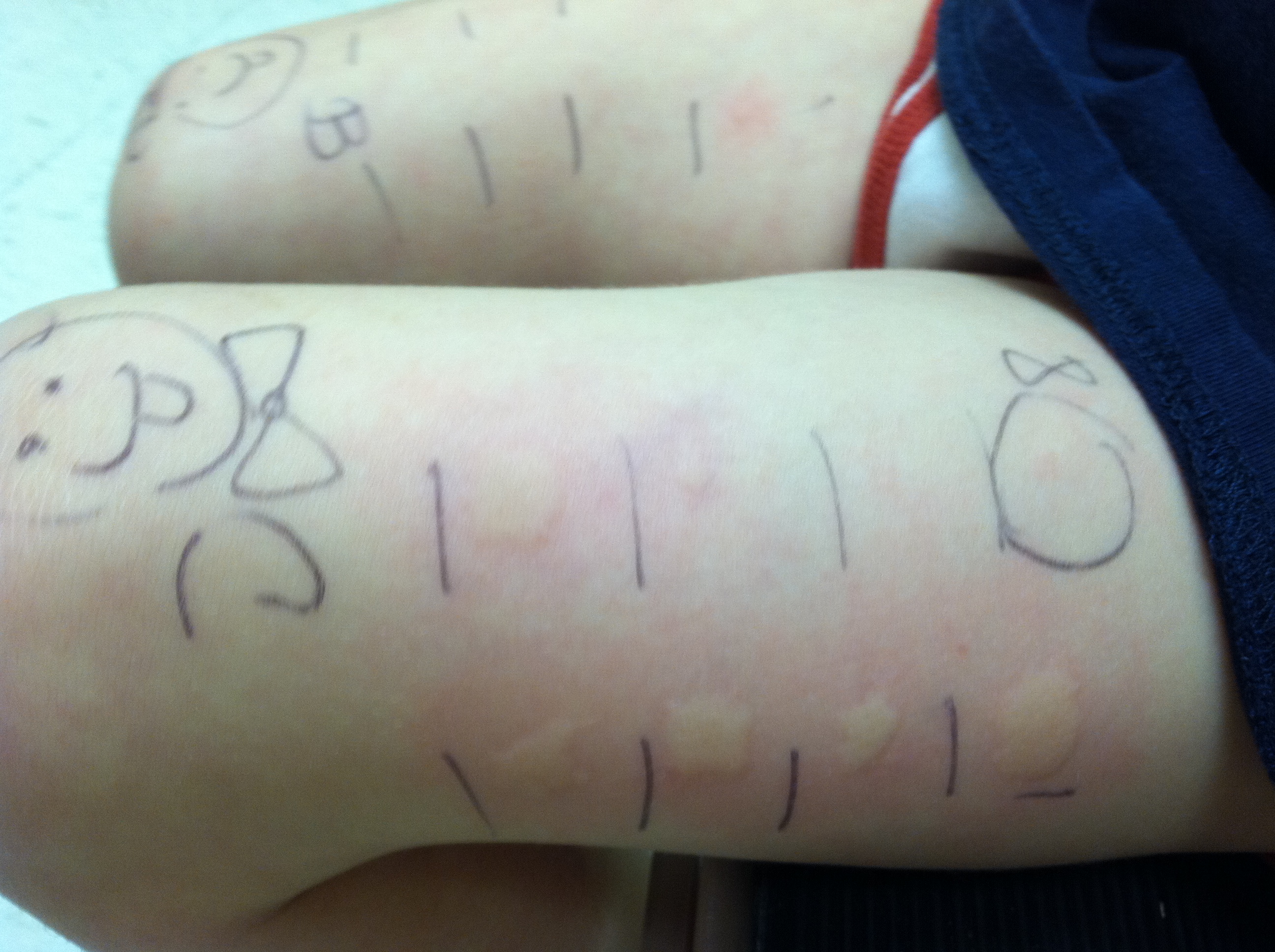 1.) Fish/Shellfish: I did not test this because the fish reaction from the skin prick test last year was so severe, I swore not to do it again until middle school. I am going to assume Jake still has a severe fish allergy.