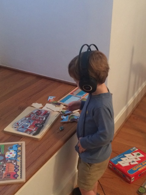In April of this year, Luke began intensive speech therapy with a new SLP. Our weekly schedule was as follows: 2 – 45 minute sessions and 2 – 30 minute sessions. In May we added 15 minutes of sound therapy with The Listening Program, which he does the same time each day. Luke loves the music and he usually works on puzzles or plays with blocks while he does this.