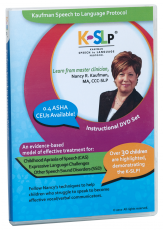 Next, I loved Nancy’s tips for using the K-SLP with children on the autism spectrum: It may be best NOT to start with the simple reduplicated consonant-vowel-consonant-vowel words (e.g. Mama, BaaBaa) so we do not inadvertently teach these children that all words are produced twice. Additionally, parents and therapists should be careful not to overuse the word “say” as children with ASD may begin adding this word prior to all words they are taught.